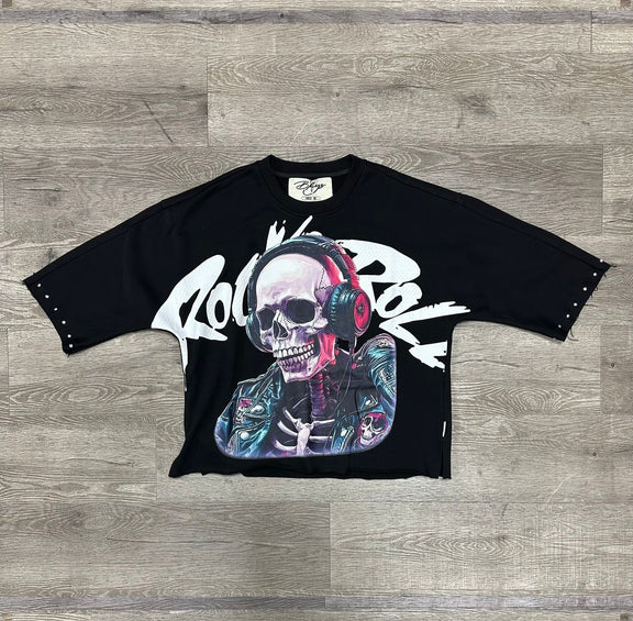 • Graphic: Skeleton DJ with headphones + “ROCK & ROLL” graffiti lettering